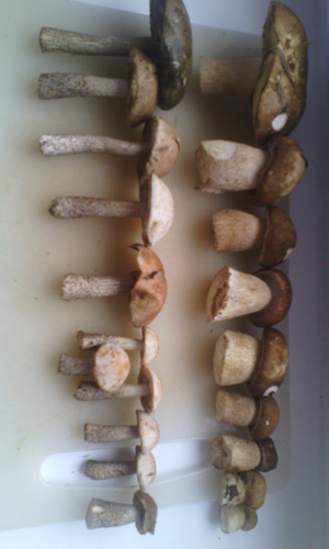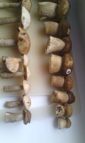 в выходные были на даче, два дня бегали с сестрой в лес (каракан) по ведерку белых и боровиков, немного груздей и ведро моих любимых сыроежек-синявок , которые я там же на даче благополучно засолила, ибо до города их довезти не реально