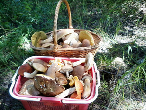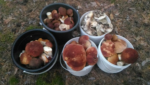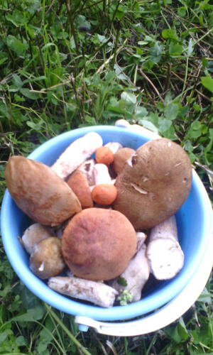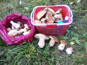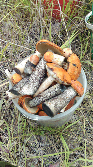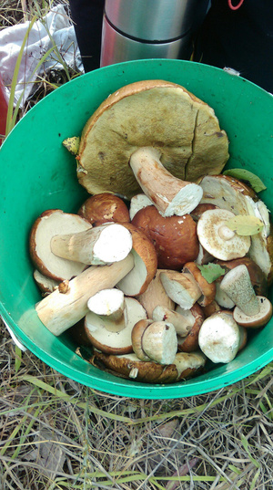 Сегодня были в каракане. За два часа собрал ведро грибов, белые и подосиновики.