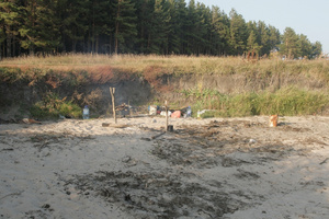 Единственное, есть стойкое предположение, что летом там народ постоянно, примерно так же, как на берегу в Караканском, но в принципе, думаю что должно хватать места тем, кто очень хочет:) Вот такие мини-обрывчики с мини-пляжиками песчаными внизу там и были вокруг, мы по сторонам не ходили особо, но думаю, как и на нашем месте там должны быть спуски в воду нормальные, чтобы понемногу заходить, купаются же люди там. Сейчас нашел график уровня в водохранилище - в августе см на 30 больше воды было, значит пляжик водой почти весь был покрыт, до августа не было графика.
