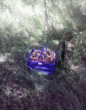 Вчера как обычно раздольное 2 пакета лисиц, по мелочи белый\подберезовик\подосиновик, все посрезано, все постоптано...