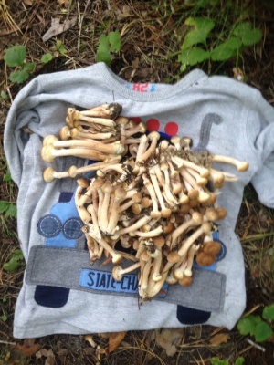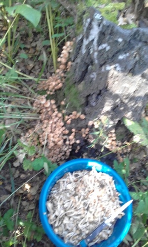 Мой улов на сегодня 5 ведер опят. Кстати и вправду много червивого почему-то. Извините что боком не хотят прямо грузится