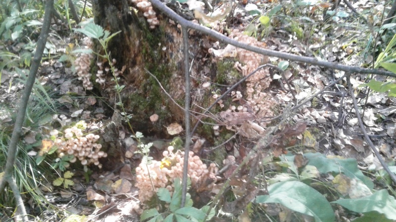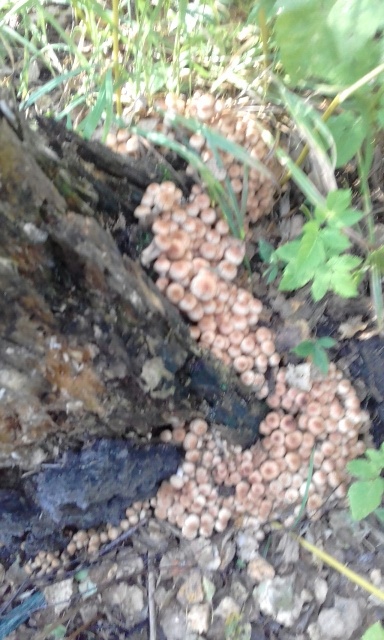 Так вот вернувшись на следующий день во вторник (потому-что Тётя не поверила и хотела своими глазами убедиться, что опята ещё маленькие) , приехали примерно около 12часов дня - на первое место где были в понедельник, были в шоке, что их уже какие-то варвары просто посбривали опятки, чуть-ли не с самими пнями!!! Кора валяется вокруг, эти малявки видать из рук сыпались(вокруг всё ими засыпано). По срезам было похоже, что срезали видимо в понедельник вечером следом после нас или на следующий день утром.