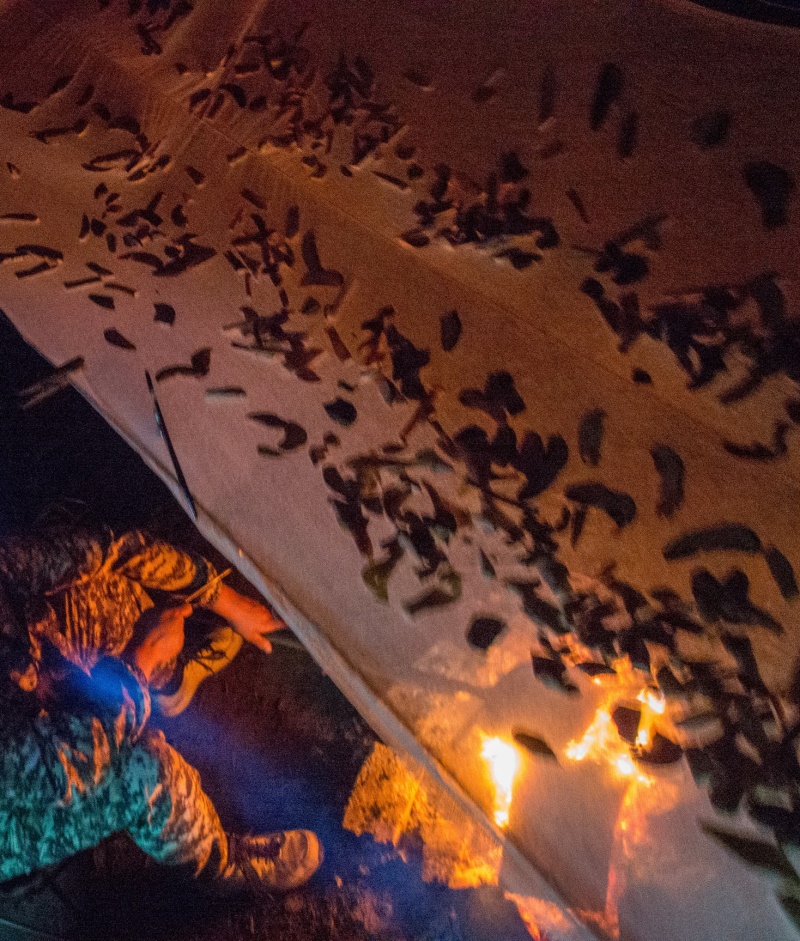 Внизу костер, тепло) За ночь все подвяливается, а за 2 - высушивается полностью