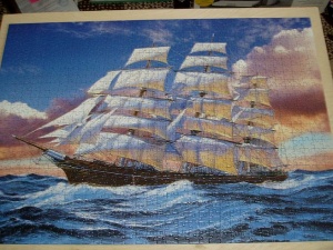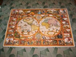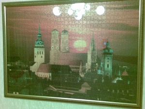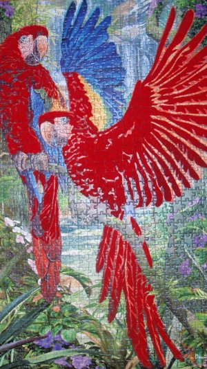 Вот и я хочу похвастаться :смущ: мы очень с мужем любим собирать паззлы..у нас уже в 3-х квартирах наши творения висят. И еще на дачу хватит. :улыб:Вот этоту работу мы взяли с собой в новую квартиру.