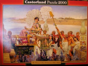 Недавно приобретенный "Моисей в тростниках", по картине сэра Лоуренса Альма-Тодема, 2000 элементов. Шикарная штука, получили огромное уджовольствие от сборки. Жалко было разрушать красоту и складывать в коробку!:улыб: