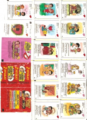 также имеется обменный фонд около 8700 единиц по данной теме (пачки вкладыши обертки наклейки полные блоки с жвачками, упаковка....)