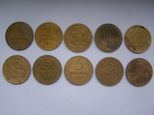 5 коп 1935 (новод) РЕДКАЯ, '46, 52, 53 ,54 ,57 ,77 ,81 годы.