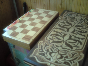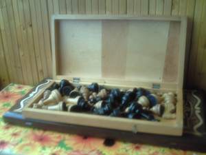 Меняю шахматы (полный комплект) , нарды (полный комплект) на паззлы фирмы Castorland не менее 1000 элементов. Есть ещё доска от нард , ручной работы, но с косячком - видимо дерево было не до конца просушено и её слегка повело. Знающие люди сказали,что это дело можно при желании исправить. Фото шахмат и доски ручной работы прилагаю.