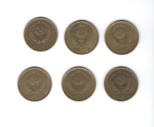 Меняю 6 советских трояков разных лет (1982-1987 включительно) со штемпелем от 20 копеек на 15 обычных трояков разных лет образца 1961 года (ну, то есть, со штемпелем от 3 копеек).