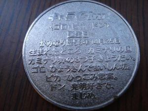 а медалька юбилейная к 20-ти летию мультяшных героев-братьев Goro, Pika, Don. Берегите ее, возможна она священна для японцев и стоит кучу денег
