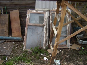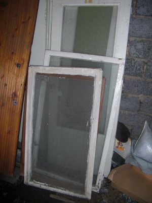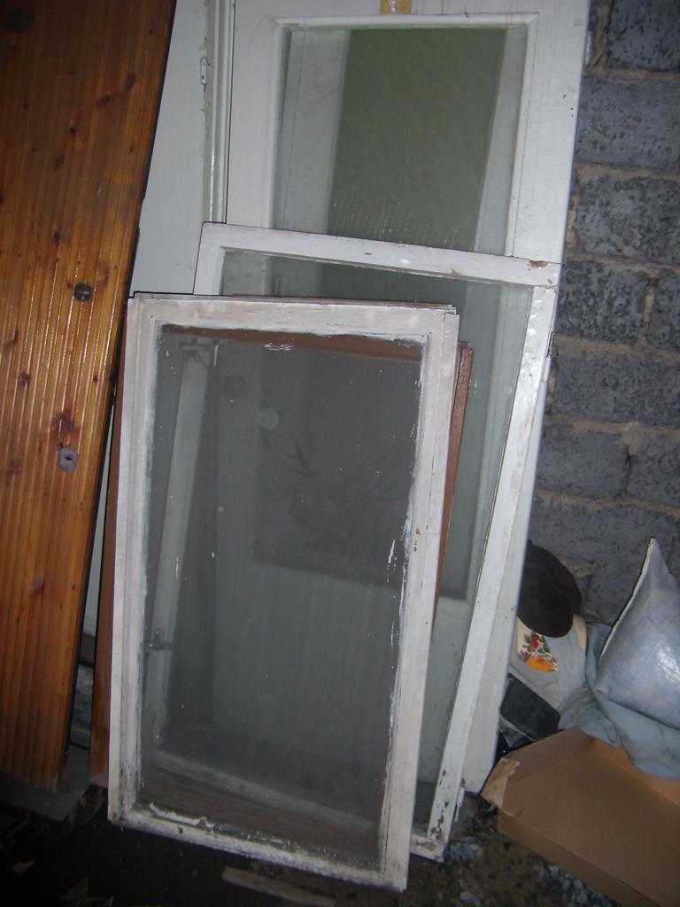 1) Рамы оконные старые, большинство стекол целые. Штук 20.