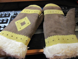 Рукавички из натуральной замши, внутри искусственный мех. На подростка или маленькую взрослую руку. Очень прочно прошиты.