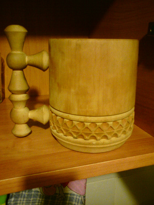 На мой сугубо профанский взгляд пивас хлыстать с деревянной кружки это какой то бред! По моему чисто сувенирное изделие! С тем же удовольствием можно пить из матрешки. Чем не устраивают металлические, керамические, стеклянные??