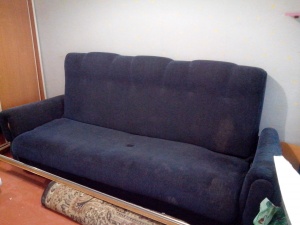 Меняю старенький диван двухместный синего цвета - подойдет на дачу или на съемную квартиру - на шпатлевку масляно-клеевую, утюг в рабочем состоянии, доску гладильную или рассмотрю ваши варианты. Самовывоз-самовынос с 1 этажа в калининском районе. Фото по запросу.