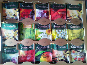 Обменяю остатки набора гринфилд( все чаи со вкусами, 60-63 пакетика) на 2 пачки пакетированного гринфилда( зеленого с жасмином и черного)