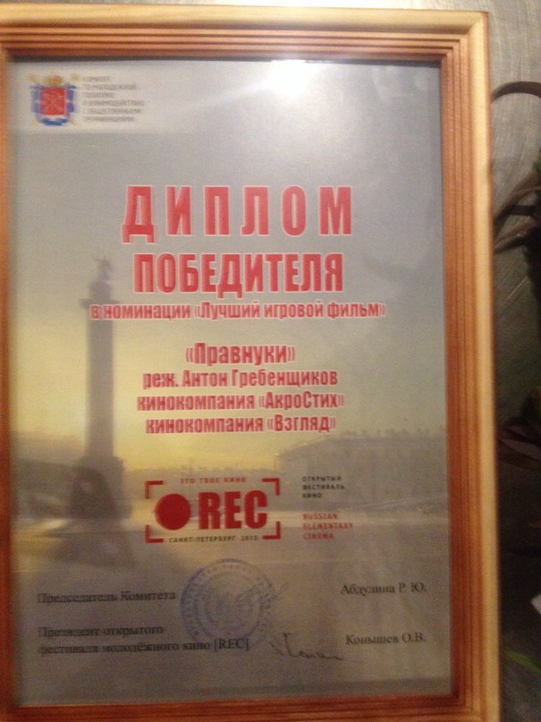 Ну, что, друзья мои!!!!!! Наш фильм "Правнуки" получил главный приз в номинации "Лучшее игровое кино" в Питере! Удачи всем и всем ОГРОМНОЕ спасибо за поддержку!