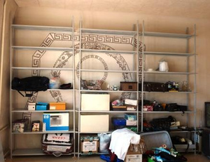 Стеллажи. Цельный металлический корпус, полный металл, без "перфорации", полимерное покрытие, тяжелые и очень прочные-вечные. 3 основных, не разборных (полки снять можно), к ним еще 2 полных комплекта полок, вставляются на крепления между основными. Получается 5 конструкций. Высота 2м 70 см., глубина полки 30 см, длина одного "блока" 1м20см, без крепления, +2-3 см, межполочное пространство 40 см, всего 8 полок, включая верхнюю.