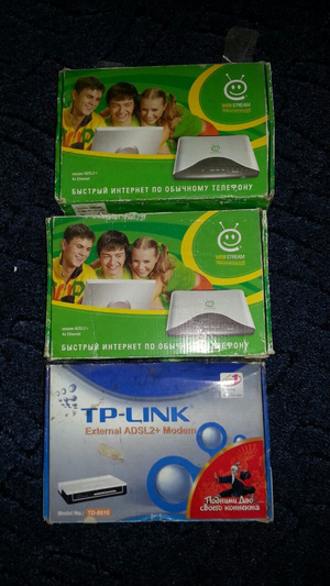 3 адсл модема в комплекте, работоспособность неизвестна, но как минимум один должен быть рабочий.