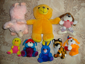 Кучка мягких игрушек на коробку Чокопая (12шт.) или вафельный тортик.