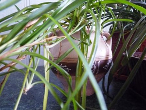 Хлорофитум в горшках- 4 пластиковых, коричневых и 5 керамика, 1- подвесной (керамика). Всего 9. Цветок+горшок=киндер-сюрприз. Или ДЭ.