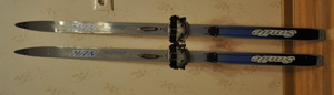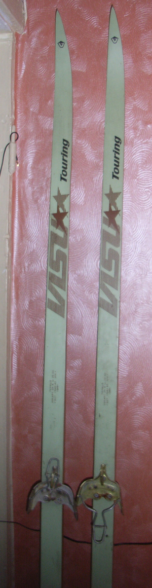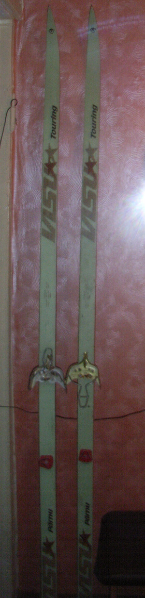 Есть лыжи беговые длина около 200 см с креплениями + палки