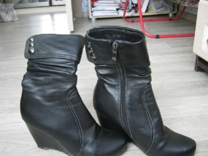 имеются короткие полусапожки на миниатюрную ножку размер 35 -36.высота платформы 7 см.состояние на 4-.отдам за (фрукты или сок или кофе)нахожусь на ленинградской