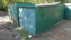 металлический в 90 г был киоском длина 2 м 30 см ширина 2 м 10 см высота 1 м 95 см есть ставня рама деревянная пол деревянный можно под бытовку или кому на дачу