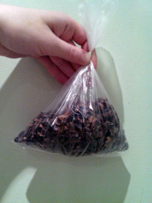 пакетик кэроба (плоды рожкового дерева) - используются в кулинарии, в частности в веганской и постной кухне. чистый, сладкий, но мы не оценили)))
