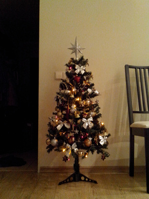 ёлка (одна "лапка" у подставки сломана из-за падения, лучше сделать елке крестовину, имхо), собирали 1 раз всего, новенькая