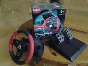 Руль с педалями Logitech Formula Force EX, очень мало играли. Меняю на смартфон, игры для PS3 или джойстик.