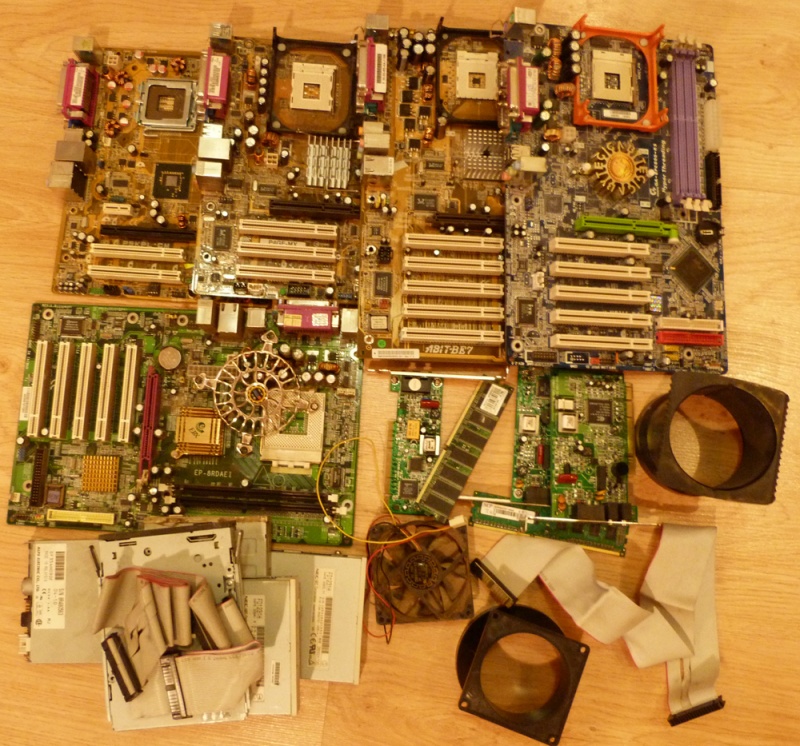 Материнки 462, 478 и др, память, какие-то модемы, флоппики, кулеры