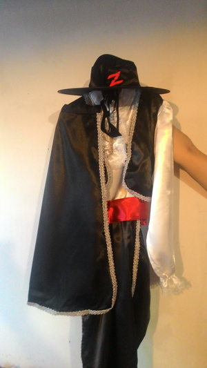 Вот такой костюмчик ZORRO на мальчика 1-2 класса мож кому и повзрослей, на рост 140 гдето, написанно размер 40!