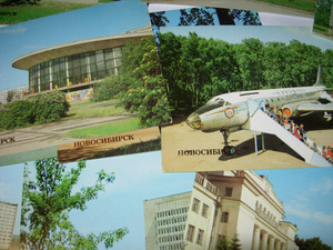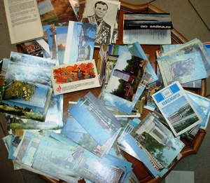 Такая вот гора открыток. 1960-70-е. Москва, Барнаул, Свердловск (Екатеринбург который), Горький (т.е. Нижний Новгород), Латвия, Грузия, Алма-Ата, Омск, Байкал, Волгоград и – само собой – Новосибирск. И Гагарин.