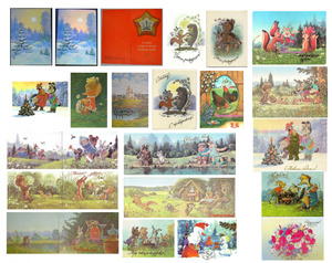 Вот такие есть открыточки времер СССР, 60, 70, 80 гг.
