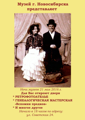 14 Мая 2016 года в 11-00 часов в помещении музея Октябрьского района будет проходить очередное заседание Новосибирского историко-родословного общества. Приглашаем всех желающих и интересующихся этими вопросами. АДРЕС МУЗЕЯ: ул. КИРОВА 80, станция метро ОКТЯБРЬСКАЯ.