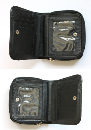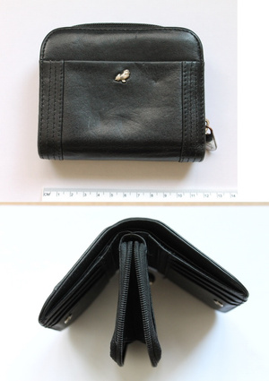 9) Кожаный кошелек, не застегивается замок-молния кармашка для мелочи