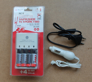 8) Зарядное устройство для аккумуляторов типа АА/ААА (в комплекте 4 аккумулятора, давно не использовались)
