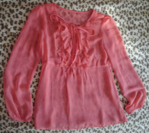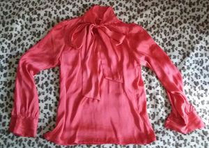 - блузка из пролиэстра, размер - XS, воротник завязывается бантом;