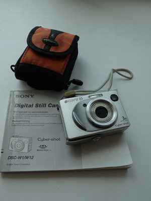 -фотоаппарат SONY/ рабочий, но включается с 55 попытки+чехол+2 карты памяти
