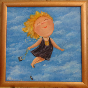 меняю свои работы, масло, холст на картоне, размер всех 30*40,(девушка, летающая от счастья - 40*40)