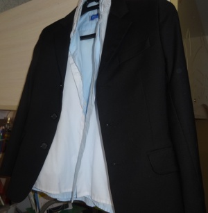 2. Костюм школьный, черный, пиджак и брюки. Пиджак носили раз пять только на праздники, брюки тоже б/у, но очень приличные.