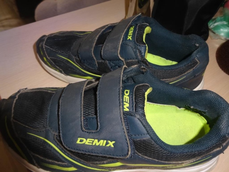 4. Кроссовки, две пары, одни 34 размер (темно-синие), другие 35 размер(на шнуровке). У одних немного отклеились носы. Может кто добьёт за лето.