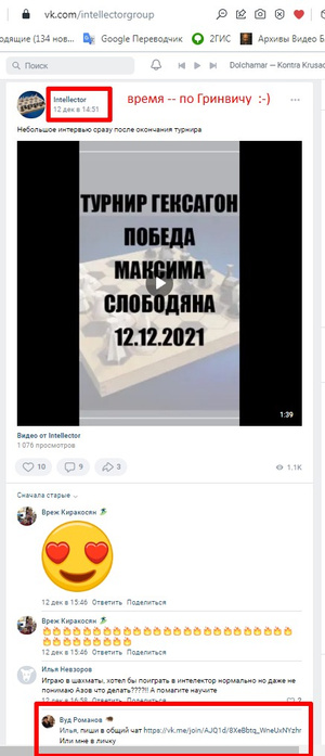 Есть ещё чат, в котором люди держат связь и договариваются об играх. У меня что-то не получается сделать ссылку-приглашение.На всякий случай покажу ход, по которому вошёл в этот чат я пару недель назад. Эта ссылка