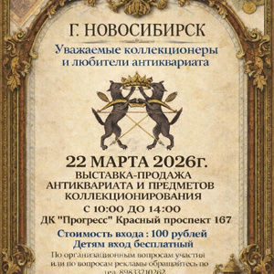 22 марта 2026г. (Воскресенье) в г. Новосибирск, по адресу Красный проспект 167, ДК Прогресс, с 10 до 14 будет проходить ВЫСТАВКА-ЯРМАРКА предметов коллекционирования, винтажа и антиквариата.