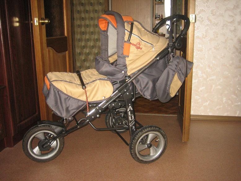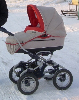 Немного от себя. Коляска высокопроходимая, здорово прыгает по ступенькам. Проходит в лифт. В комплекте есть утепленный синтепоном (или еще каким-то материалом) конверт на флисе, который позволил нам всю зиму гулять в люльке только в байковом одеяле. Этот конверт можно использовать также и для прогулочного варианта коляски. Зимой у нас всегда были теплые ножки. Люлька очень легко снимается с шасси, сверху есть удобная ручка для переноски. Месяцев до 5 мы использовали ее в качестве автокресла и кроватки в гостях.
