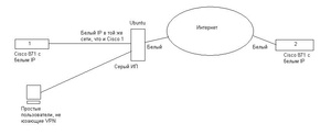 Третий день бьюсь над следующей проблемой. Имеется роутер Cisco 871 с белым IP, находящийся за шлюзом с Ubuntu Server 10.10. В удаленном офисе имеется точно такой же роутер. Междту двумя цисками поднят Site-to-Site VPN.