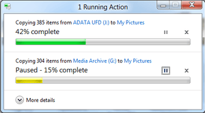 Теперь все задачи о текущих операциях (копирования, перемещения) отображаются в едином окне; были добавлены возможность приостанавливать, возобновлять и останавливать текущие операции копирования; теперь можно просмотреть детализированную информацию о хронологии скорости копирования; расширенны возможности по решению конфликтных ситуация (когда файлы с таким именем уже существуют). Была так же улучшена точность оценки времени, оставшегося до завершения копирования.