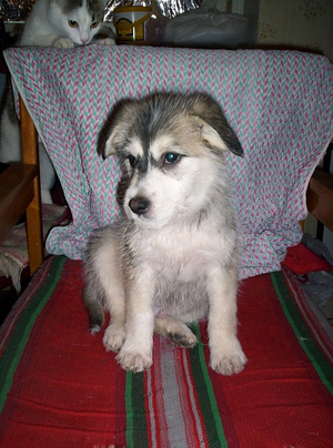 Взяли таки мы щенка..в знакомом дворе собака ощенилась, пошли посмотреть, один самый толстый не успел удрать, нам достался. Вот только прочитала, что маленьких в зиму нельзя в будку, а она , зараза, уже наровит на диван запрыгнуть......