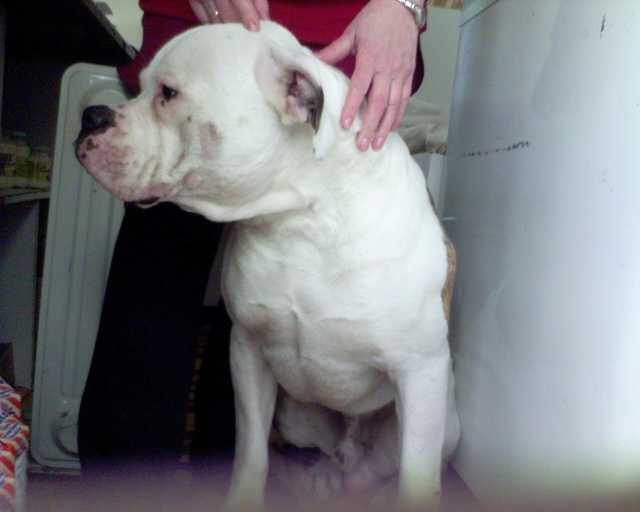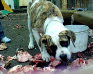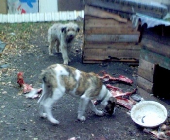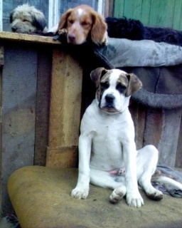 Там дела такие - есть довольно большой дом-барак, где живут 10 - 15 собак во главе с помесным кавказом. Кавказ мальчишку не принял, видимо почуяв в нём потенциального соперника, пробовал погрызть. Их развели - кавказ в своём тереме, а мальчишку на улицу в будку. Начались холода, погибнет бульдог, если срочно не заберём не пристроим, каждый день - цена его жизни. Парень хороший, мне очень понравился, клейма нет, возраст около 4 - 5 месяцев, глазки чистые, нос кожаный чёрный, ушки чистые, мосластый такой, кость широкая, хорошая линия плеча и постав. Задние лапы на удивление крепкие при начальной стадии провисания спины - надо заниматься с парнем срочно, будет хороший крепкий стандартник. Весёлый и игручий, лизун и непоседа, выкладываю фото. Снимал телефоном, сорри, в фотике, который схватил с собой перед поездкой, сели аккумуляторы, блин.