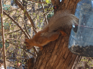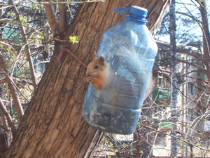 Вчера у дома увидела белку в птичьей кормушки. Наблюдала за ней полчаса, сын сбегал за фотиком, даже малость на видео сняли. Фотки уморительные, не могу не выложить